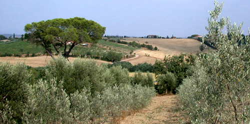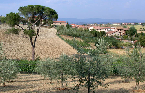 grape vines which stretch across the valley. The classic tuscan hillside.