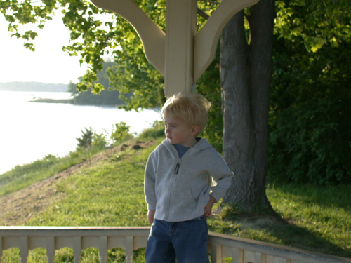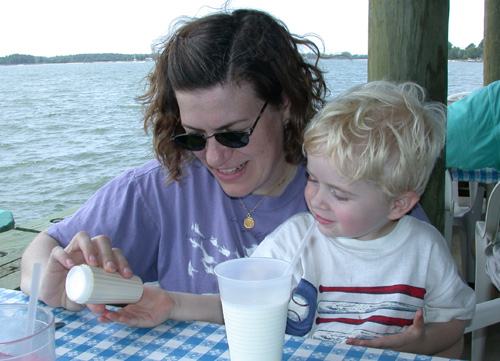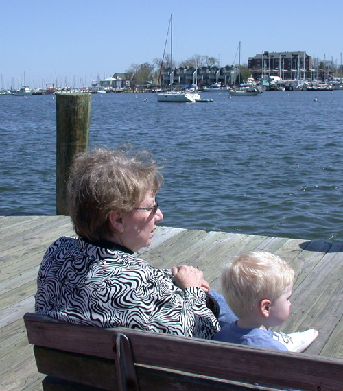 Grandma Sandy and Felix are admiring the boats down at the Annapolis waterfront.