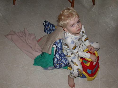 Felix has always loved blankets. Here he is carrying some