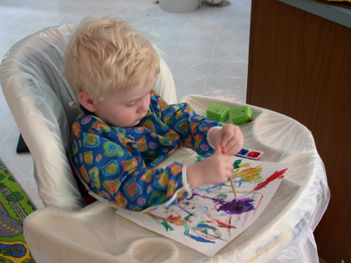 the paint and paper and got it all over his hands and hair and face. |