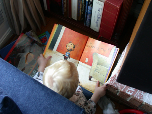 Felix is reading a book called "No, David, no!"